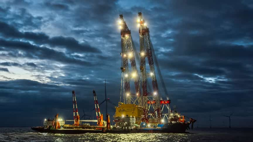 在最症结的海上吊装步调,濒临数据舱入水的浩瀚浮力变化以及导管架支腿插尖需插入海底钢管桩、两者流毒仅0.18米、偏差必须放胆在10厘米以内的极高精度要求,风光团队依托“三航风姿号”起重船的特地性能,在GPS与专科定位软件的指点下,由时间负责东说念主现场调处转折带领,将下放速率严格放胆在每分钟0.1米,最终数据舱主体结构在“深海穿针”中稳稳插入海底钢管桩,罢了了“零偏差”精确就位。