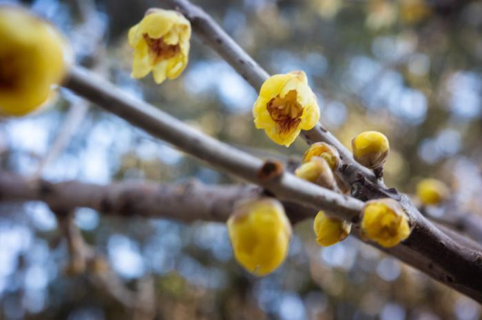 朵朵金黄色的花朵挂在枝端,为冬日增添一抹亮色。