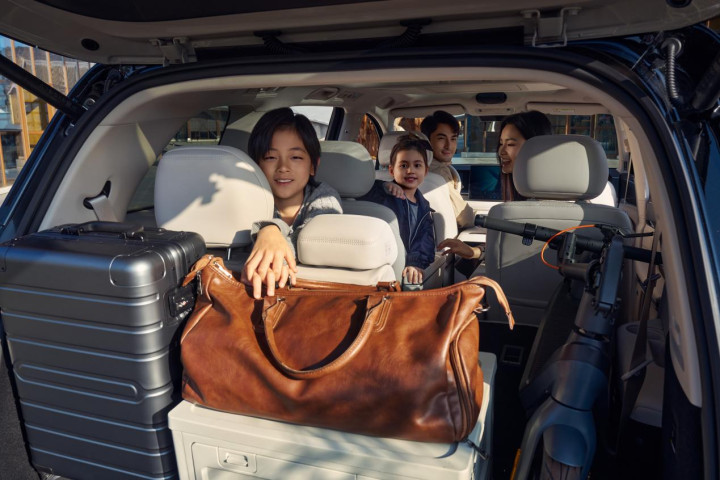 大唐礼聘“2+2+3”七座布局,系中国品牌首款该布局的全尺寸SUV。官方数据露馅,其得房率89.3%,套内面积6.34每每米,二排中央过说念宽201mm。满员景色下,前后备箱可容纳10个20英寸登机箱,全车47处储物空间,252L电动前备箱为各人同级最大。