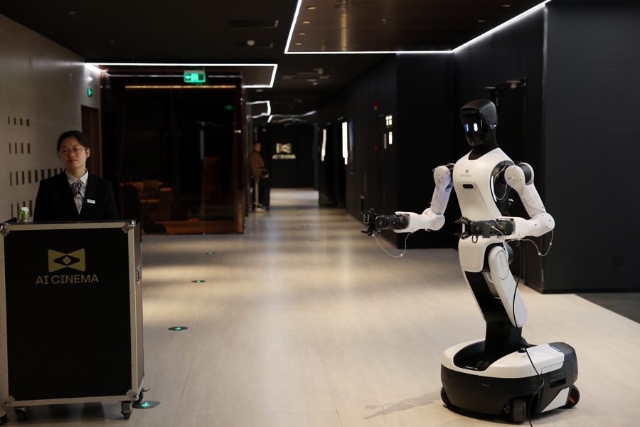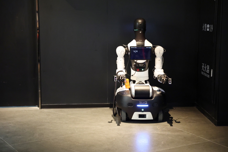 AI CINEMA 新天下东台里影城的机器东谈主职工 赖鑫琳 摄