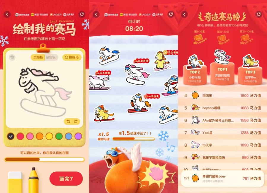 这次新春企划冲破传统新春活动模式,深度贴合年青群体潮玩需求,用心打造专属玩法,开云官方体育app下载举例用户可证实创意,手绘专属跑马形象。而况只需共享活动,即可参与庆幸抽奖,抢庄牛牛有契机赢取广州热雪古迹滑雪券、六福珠宝运财墩墩马等重磅好礼;“古迹跑马榜”前100名实力玩家,更可独特斩获酷狗见解版畅听VIP专属奖励,让马年好运与美妙旋律沿途相伴。