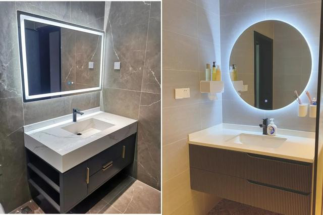 首选“镜柜+两侧垂直灯光”:在镜柜两侧竖立向下映照的条形灯带,后光从正面均匀打来,毫无暗影。