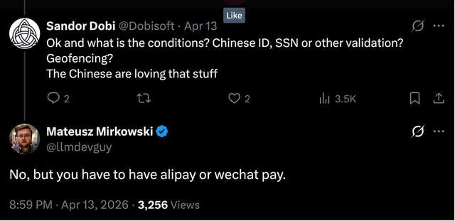 最近几天,X上的一些AI博主,一霎驱动说起一个与AI不关系的问题:怎么注册支付宝/微信支付等中国支付器用。