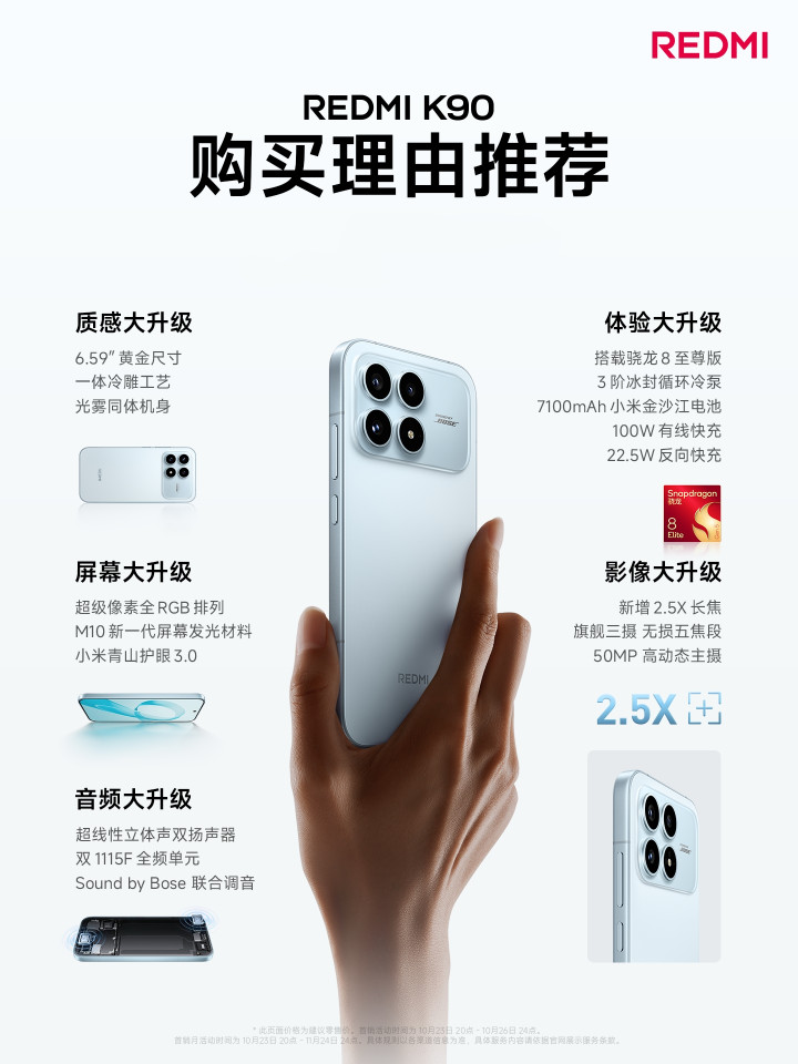 名按次二的是红米K90,12GB+256GB版得手价2070元,是目下性价比最高的骁龙8Elite手机。该机招揽6.59英寸中直屏,标配金属中框和冷雕玻璃后盖,还有5000万2.5X黄金东谈主像长焦镜头。外围确立也很得力,比如超声波指纹,IP68防尘防水和超线性对称立体双扬,7100mAH和100W闪充可以满足一天一充电的需求,符合追求质感、性能和性价比的小伙伴。