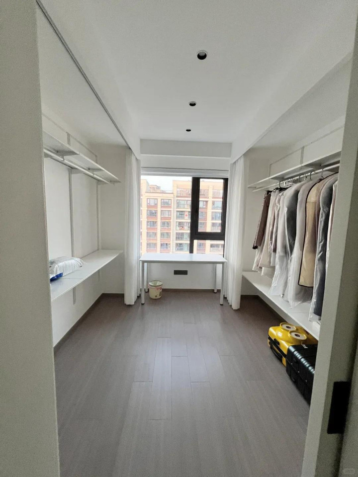 其后仔细思思,与其花几万以致十几万作念衣柜,干嘛不把空着的房间当一个大衣帽间,根底就不需要作念柜子,只装上挂衣杆就行,归正往往都是关门关窗的,这么就无须顾忌环保,钱包当然也保住了。