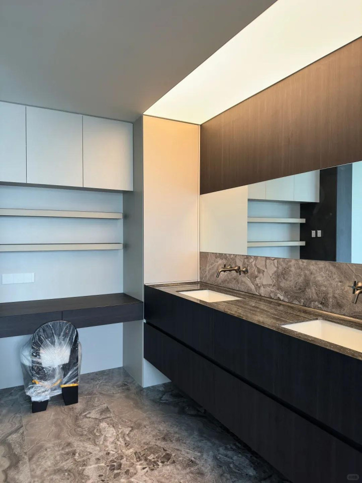 当洗面台搭配软膜天花同期出现的技巧,这种模拟的当然光的嗅觉,这种通透舒坦的洗漱氛围,只可用两个字形色“真香”。