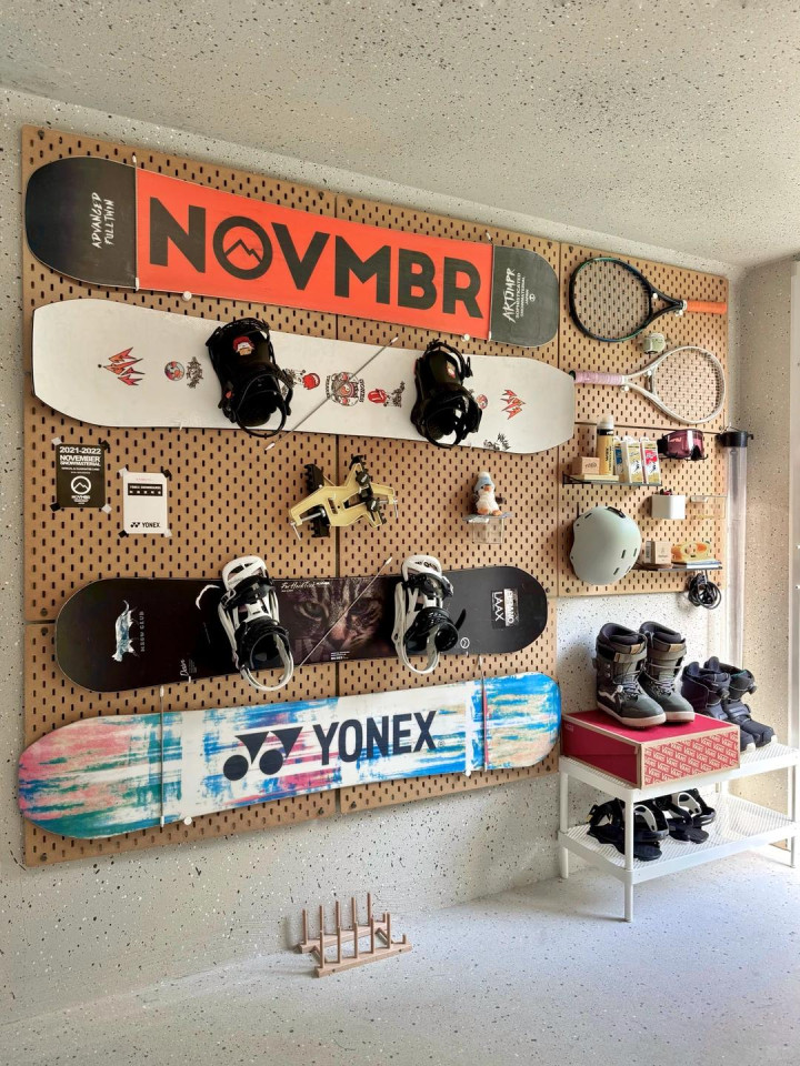这都是定制的,需要挂什么都可以依据我方的本色需求制作,比如这个网友挂的是拍子,那滑板、滑雪板、垂纶建造、骑行建造是不是都可以在这里展示?