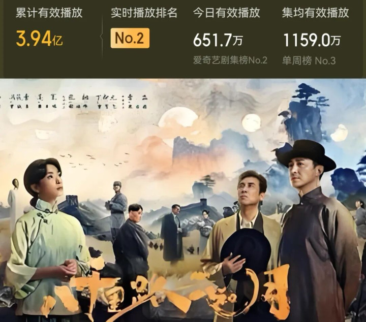 4月7日多平台开播的《八沉路云和月》,王阳、万茜、黄澄澄、于和伟等演员群像戏出色。而“干戈与和平”式雄壮叙事与常人物视角,既有试验外壳又有文化内核。集均1159万、累计3.94亿灵验播放,还行。