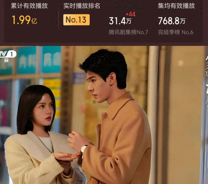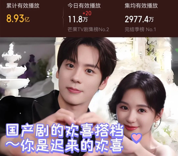 3月26日多平台开播的《你是迟来的舒心》,魏哲鸣“禁欲系讼师”与郑合惠子“软萌作者”“舒心CP”很带感。现时集均2977.4万、累计8.93亿灵验播放量,在同时皆市爱情剧中算是可以的。