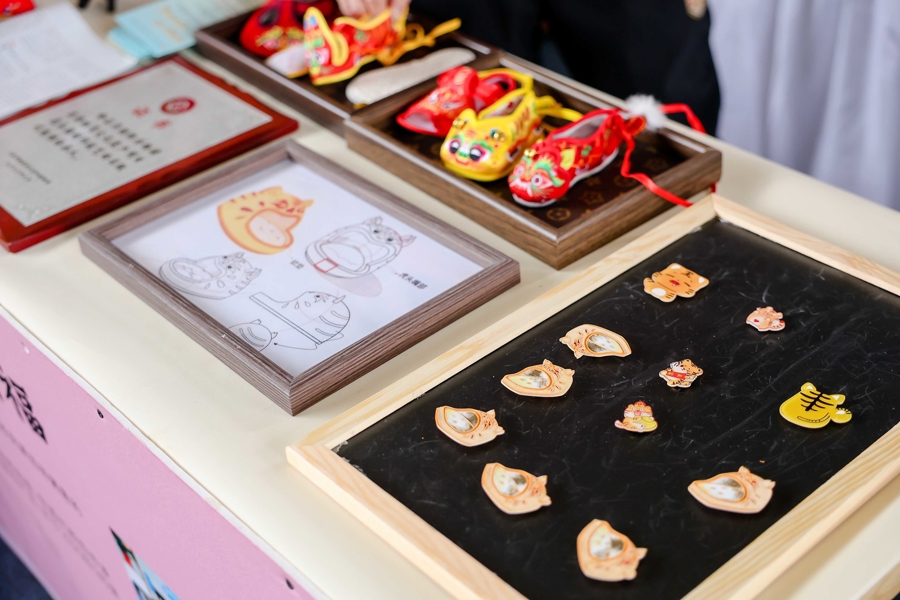 吴懿燃还尝试用琉璃、陶瓷等材料制作虎头鞋,并诓骗3D建模、AI用具,补助文创家具的联想。农历马年快要,她联想了一款诓骗掐丝搪瓷工艺制作的《虎头鞋丑萌马》,造型憨态可掬的小马坐在虎头鞋上,颇有风趣。去扬州旅游时,她或然遭受当地的工艺好意思术人人,顺便与对方迷惑了一款木雕虎头鞋挂件,上市后很受接待。她联想的3D原创剪纸工艺品、虎头琉璃挂件、手工虎头鞋、原创“萌虎赐福”醴陵瓷杯套盒还从近4000件作品中脱颖而出,荣获2025年“上海礼物”品牌商品。这两天,她与杨浦区娴雅办迷惑的虎头鞋卡套也厚爱问世,卡套后头,一只卡通小马驹脚踩虎头鞋,手合手“立时有福”的红色条幅,呼应马年的到来。
