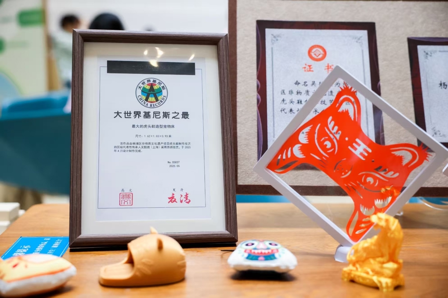 在一个责任日,记者走进吴懿燃位于新江湾城社区文化行为中心的责任室,只见里头摆设着多样种种的虎头鞋,有她从世界各地搜罗来的,但更多的是她联想开导的虎头鞋文创。客岁,吴懿燃和一又友谈天时,对方提出,能否作念一个世界最大或世界最小,或和会最多身手的虎头鞋?她说作念就作念,找了一位90后联想师,迷惑完成了“世界最大虎头鞋”的联想。