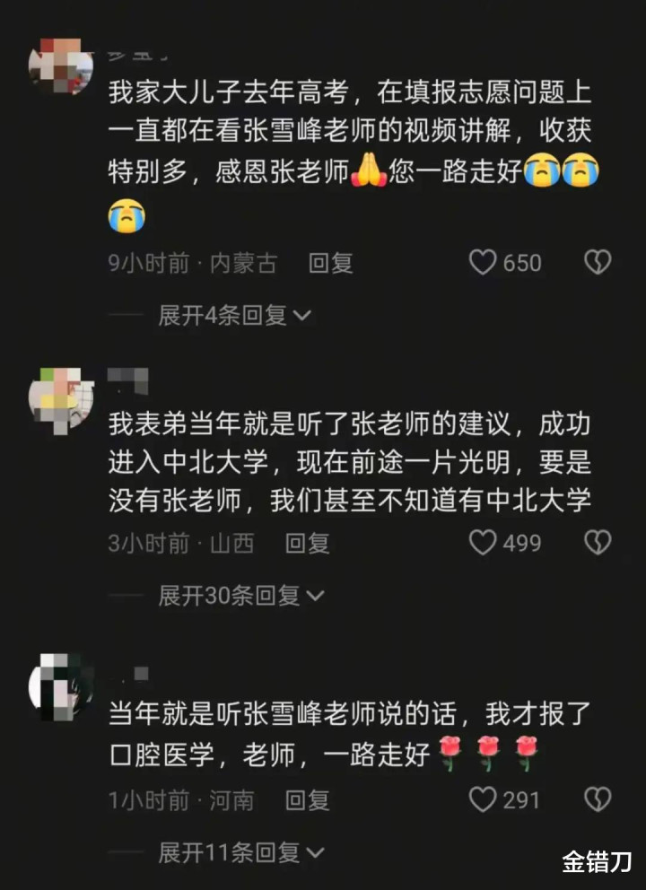 现时网上对于张雪峰的报谈下面,总能看到感谢张雪峰的留言。