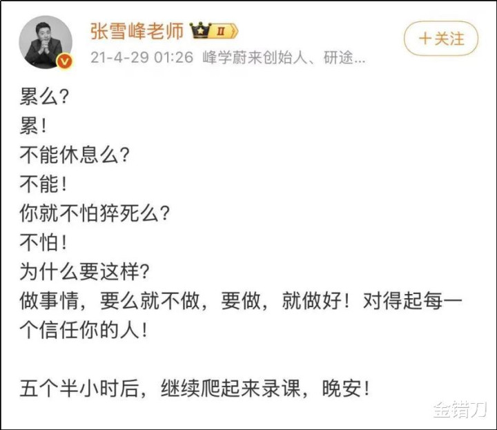 当作老师畛域顶流IP,张雪峰的高强度使命样式早已超出老例教师或讲师规模。